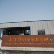 永年县创安索具有限公司地处全国最大的标准件生产基地--河北永年,地理位置优越,交通便利。自一九九九年建厂开始就把产品质量作为企业的生命线,选用优质钢材,引进先进的生产设备和工艺,聘用高级技术人才,工人全部培训上岗,道道工序严把质量关,现已发展成为一家具有高标准紧固件生产,科研,销售于一体的大型民营企业。 本公司长期提供标准,多型号,多规格的各种索具系列产品,广泛应用于国家大型重点工程建设项目,我厂的宗旨是;以质量求生存,以信誉求发展。以一流的设备,一流的人才,一流的管理,生产出一流的产品,坚持严格质量管理。为广大客户提供优质产品和更佳服务。公司全体员工竭诚欢迎新老客户来电垂询,参观考察,洽谈合作,共谋发展。 [详细介绍] 暂无记录